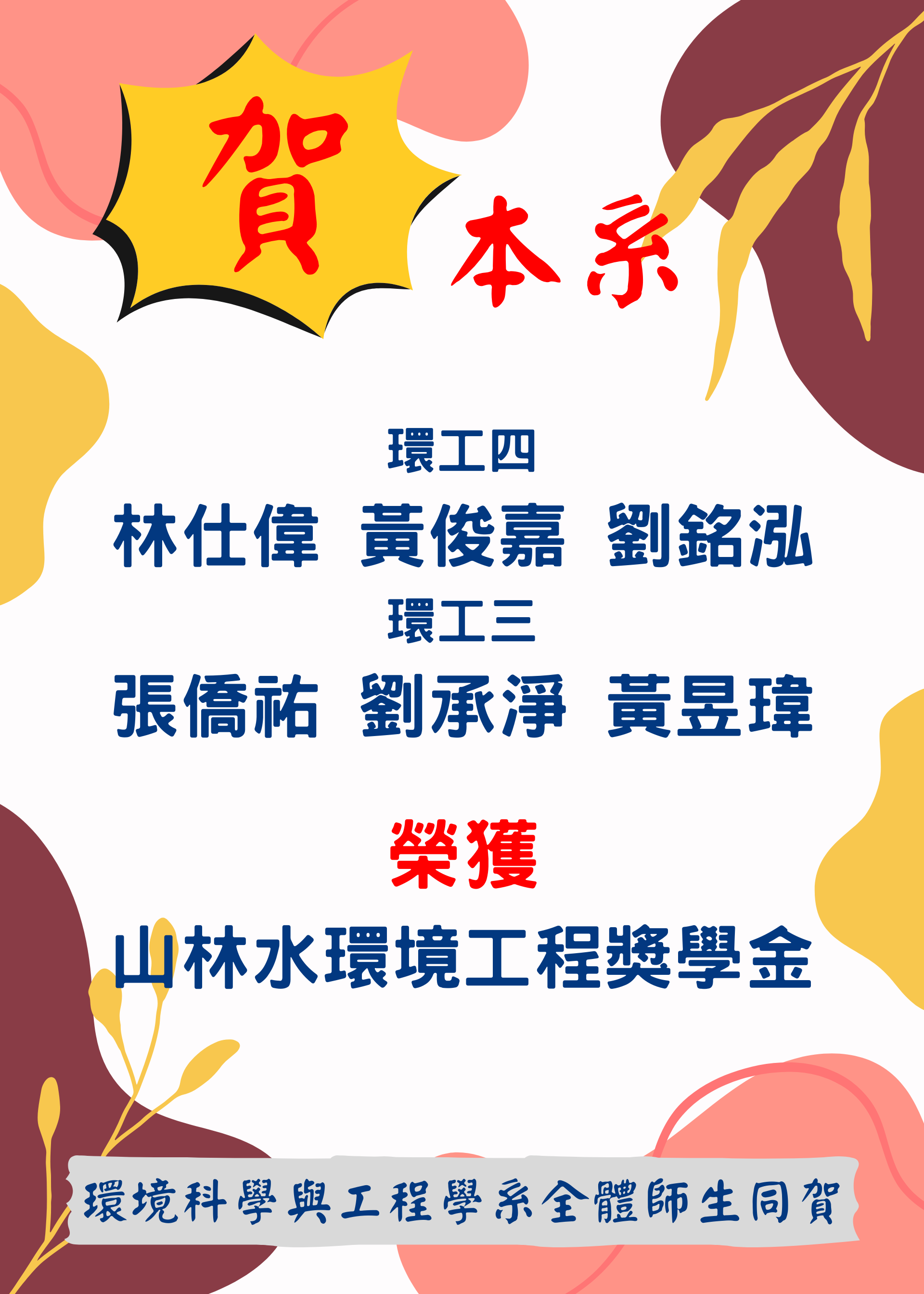 本系張桀綸同學參加 【環工年會 環保主題簡報競賽獎】 榮獲第一名