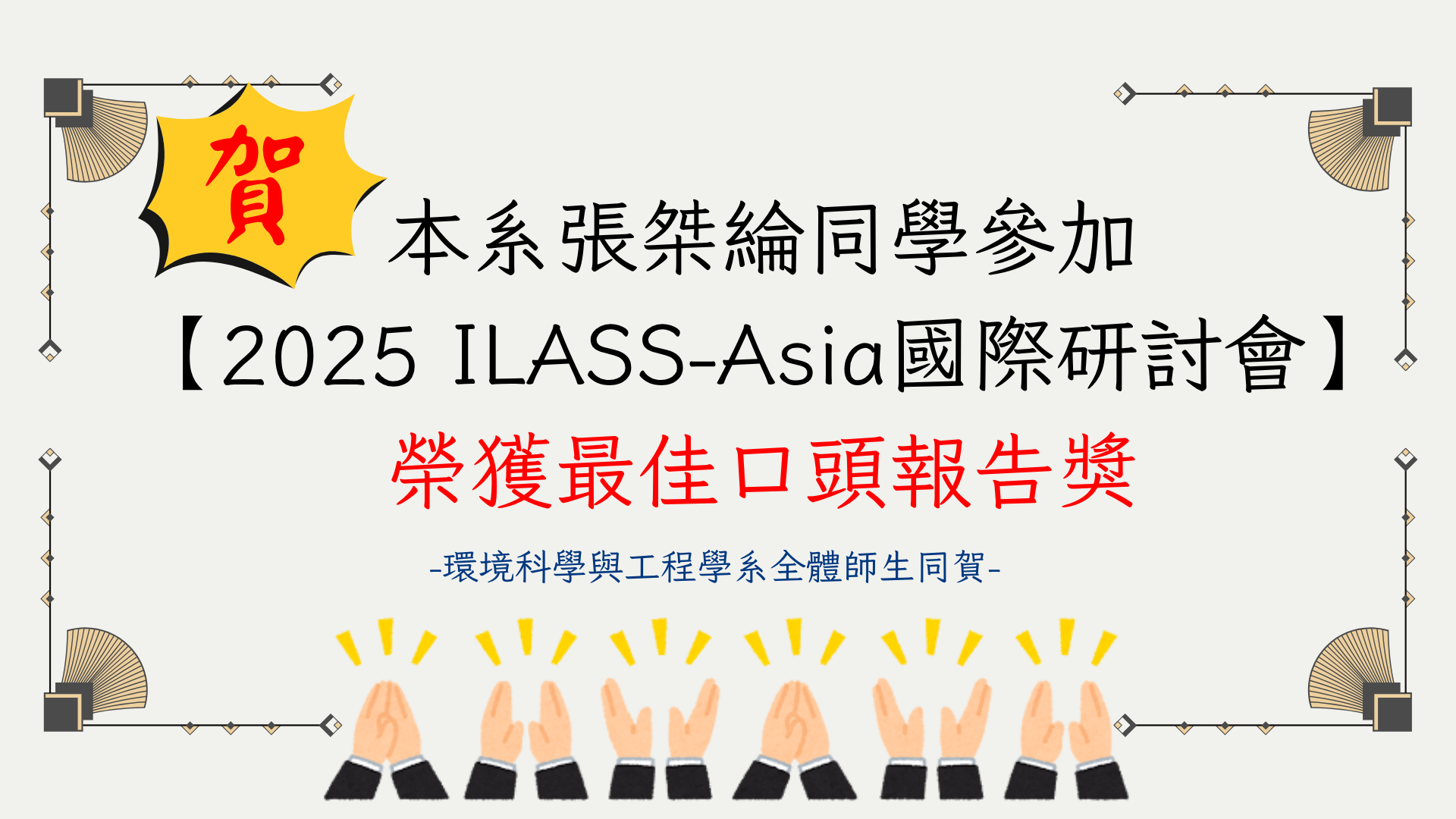 本系張桀綸同學參加 【2025 ILASS-Asia國際研討會】 榮獲最佳口頭報告獎