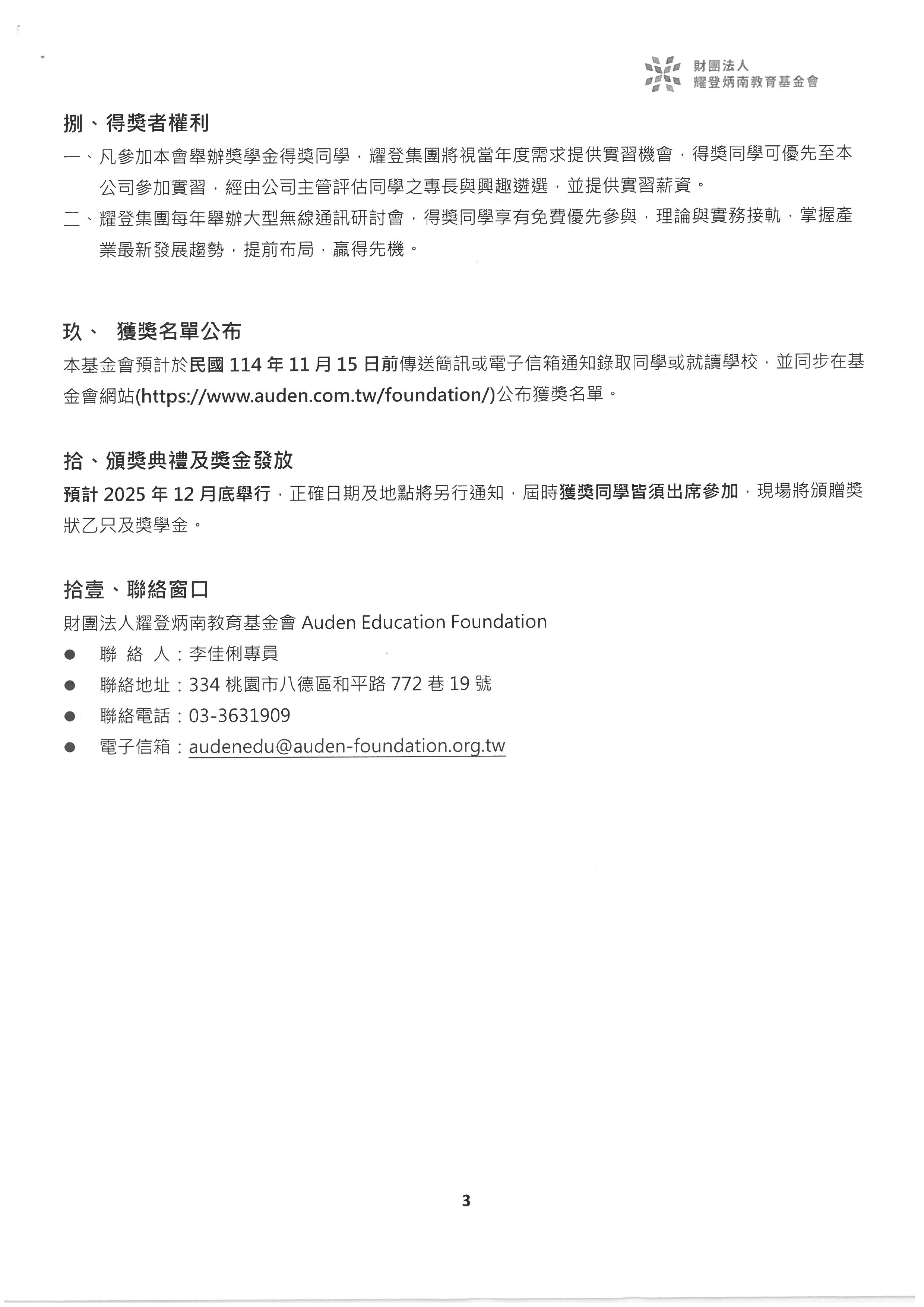 2025耀登炳南大專院校優秀人才獎學金~截止日9/30