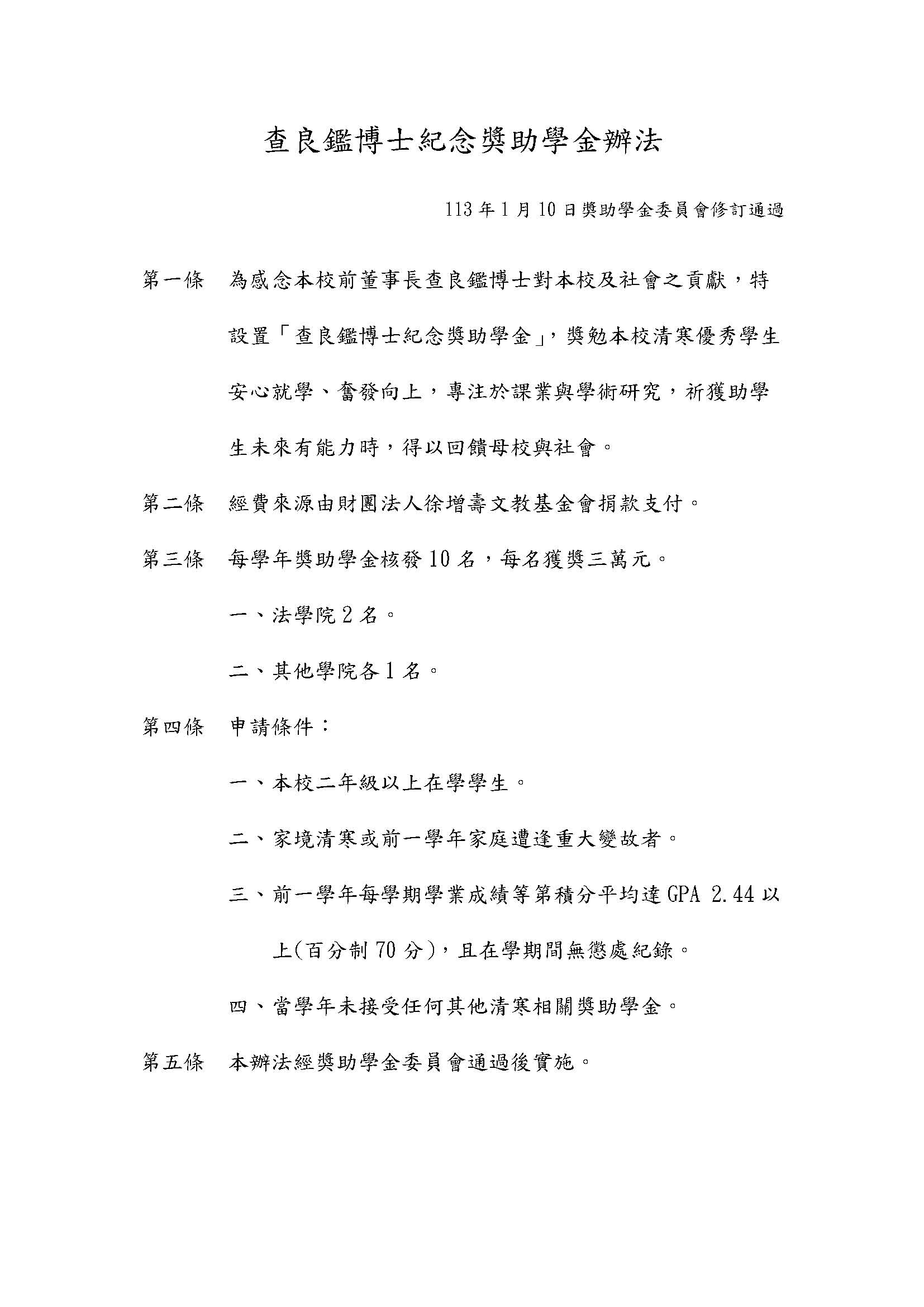 114學年度 查良鑑博士紀念獎助學金~截止申請至2/26(四)中午12點