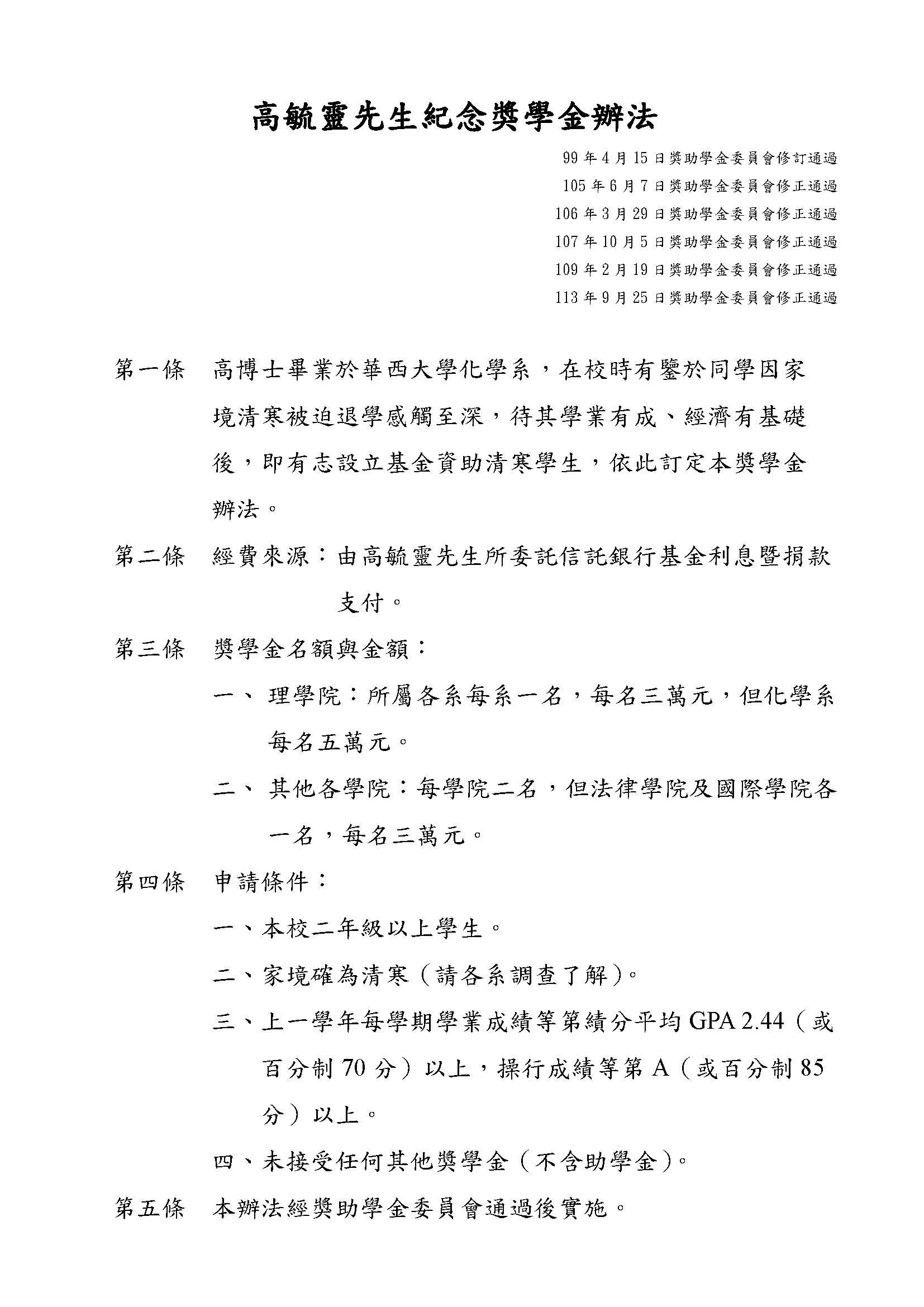 114學年度 高毓靈先生紀念獎學金~截止申請至2/26(四)中午12點