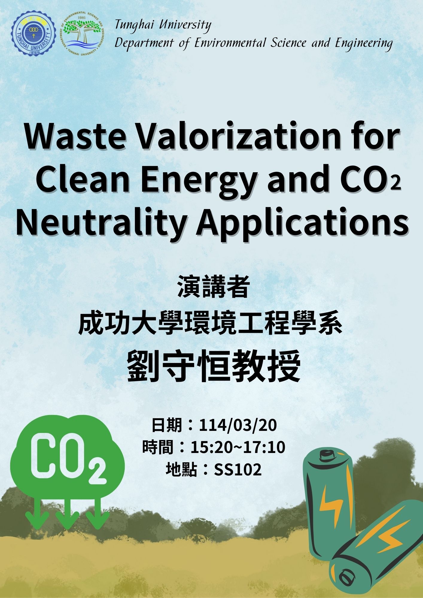 專題演講-"Waste Valorization for Clean Energy and CO2 Neutrality Applications"