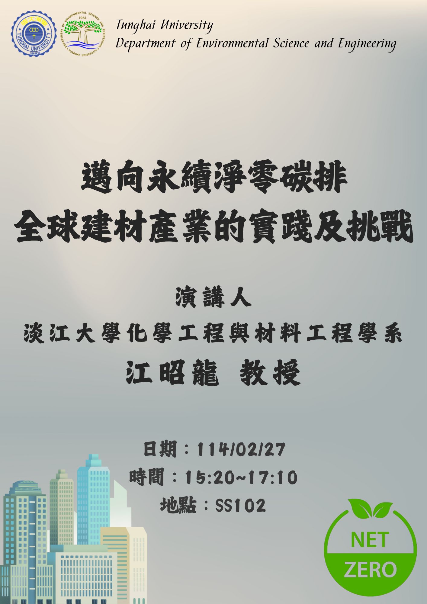 專題演講:邁向永續淨零碳排-全球建材產業的實踐及挑戰